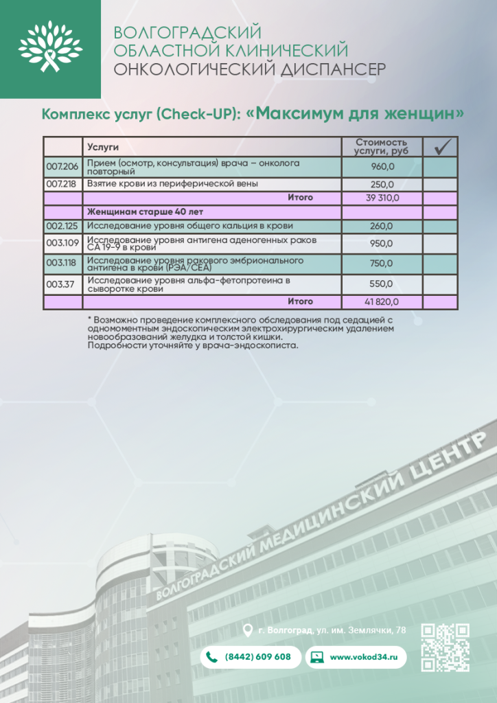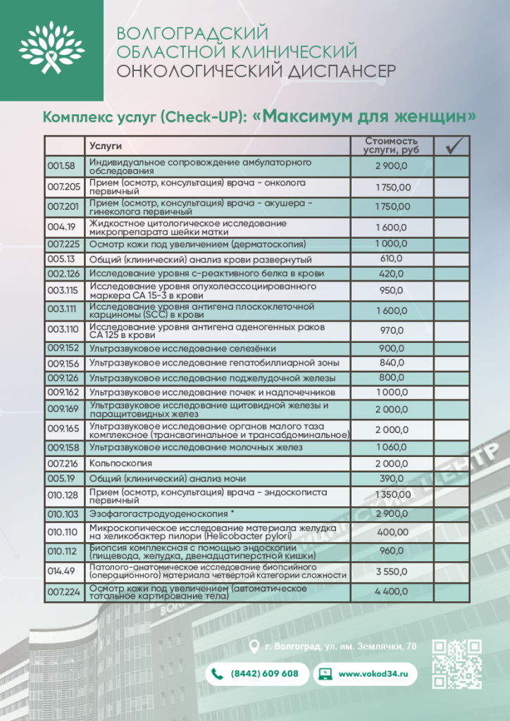 По итогу обследования Вы получите: