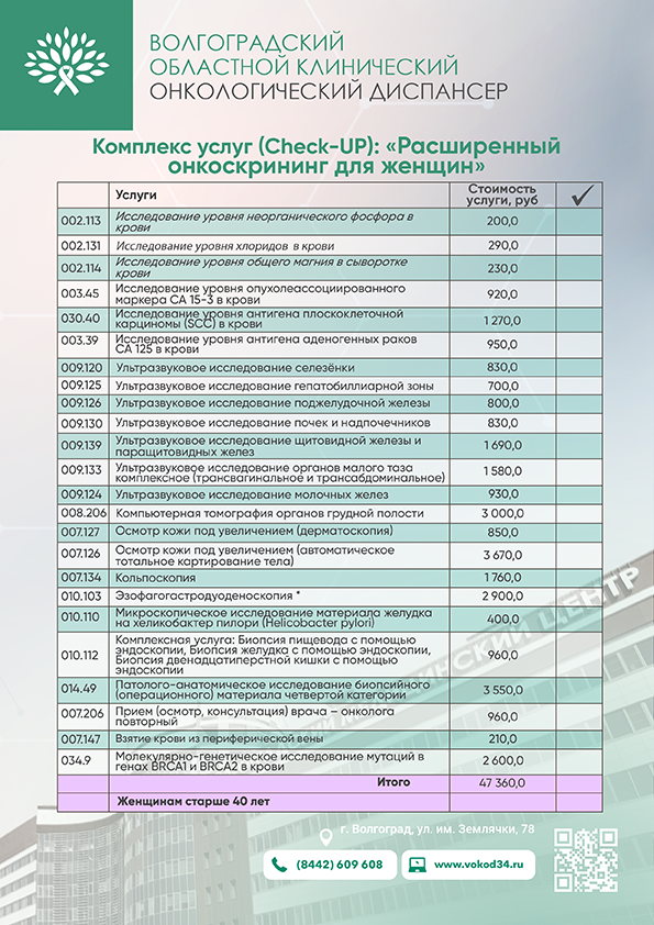 По итогу обследования Вы получите: